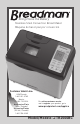 ENGLISH Product may vary slightly from what is illustrated. 1. 13. 2. 12. 11. 3. 10. 4. 9. 5. Keep Operat Warm ion Sweet Quick Crust Loaf Program Time/Tem p No Breads Breads PizzaDou gh Contro l Extra s Size Pause Save/E rase Select Start Yes 6. 8. 7. † 1. Removable lid (Part # TR2500BC-01) 2. Lid handle 3. Viewing window 4. Automatic fruit & nut dispenser 5. Control panel 6. Steam vents (both sides) 7. Power cord 8. Baking chamber 9. Bread pan clips 10. Drive shaft † 11.