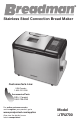 ® Stainless Steel Convection Bread Maker Care Line: Customer USA/Canada 1-800-231-9786 Accessories/Parts (USA / Canada) 1-800-738-0245 For online customer service and to register your product, go to www.prodprotect.