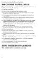 Please Read and Save this Use and Care Book IMPORTANT SAFEGUARDS When using electrical appliances, basic safety precautions should always be followed including the following: q Read all instructions. q Do not touch hot surfaces. Use handles or knobs. q To protect against electrical shock do not immerse cord, plugs, or appliance in water or other liquid. q Close supervision is necessary when any appliance is used by or near children. q Unplug from outlet when not in use and before cleaning.