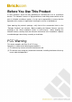 Table of Contents Before You Use This Product .......................................................................................... 0 FCC Warning .................................................................................................................. 0 Regulatory Information .................................................................................................... 1 Product Comparison ...................................................................................................