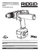 OPERATOR’S MANUAL 14.4 Volt 1/2 in. (13 mm) Drill-Driver R83015 Two Speed/Reversible 16 18 20 22 ® X R This new drill has been engineered and manufactured to our high standards for dependability, ease of operation, and operator safety. When properly cared for, the drill will give you years of rugged, trouble-free performance. WARNING: To reduce the risk of injury, the user must read and understand the operator’s manual before using this product. Thank you for buying a RIDGID product.