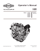 Operator’s Manual Model 430447 433447 580447 583447 589447 BRIGGSandSTRATTON.com ECopyright Briggs & Stratton Corporation Milwaukee, Wisconsin 53201 U.S.A. Vanguard Gasoline Form No. 277108-9/06 Printed in U.S.A.