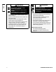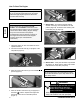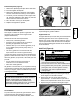7. Electric Start -- Push in the safety key (F). Push the ON/OFF switch (B) to the ON position. When the engine starts, release the ON/OFF switch (Figure 11). B F E Figure 11: Electric Start operate with the throttle in FAST Figure 10: Rewind Start position. NOTE: When starting a warm engine after a short shutdown, leave the choke lever in the RUN position. If the engine fails to start, follow the starting instructions beginning with step 3. If assistance is needed, see the “Troubleshooting” Chart.