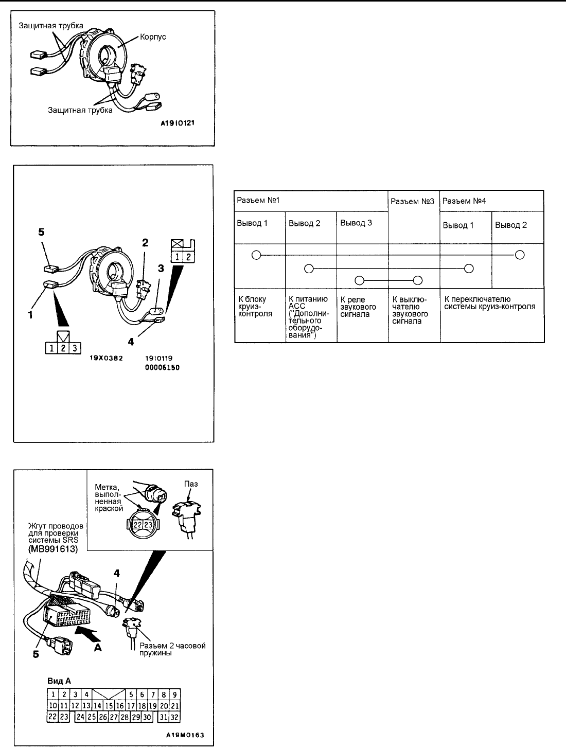 3. Проверьте состояние цепи между выводами разъема №1 и выводами