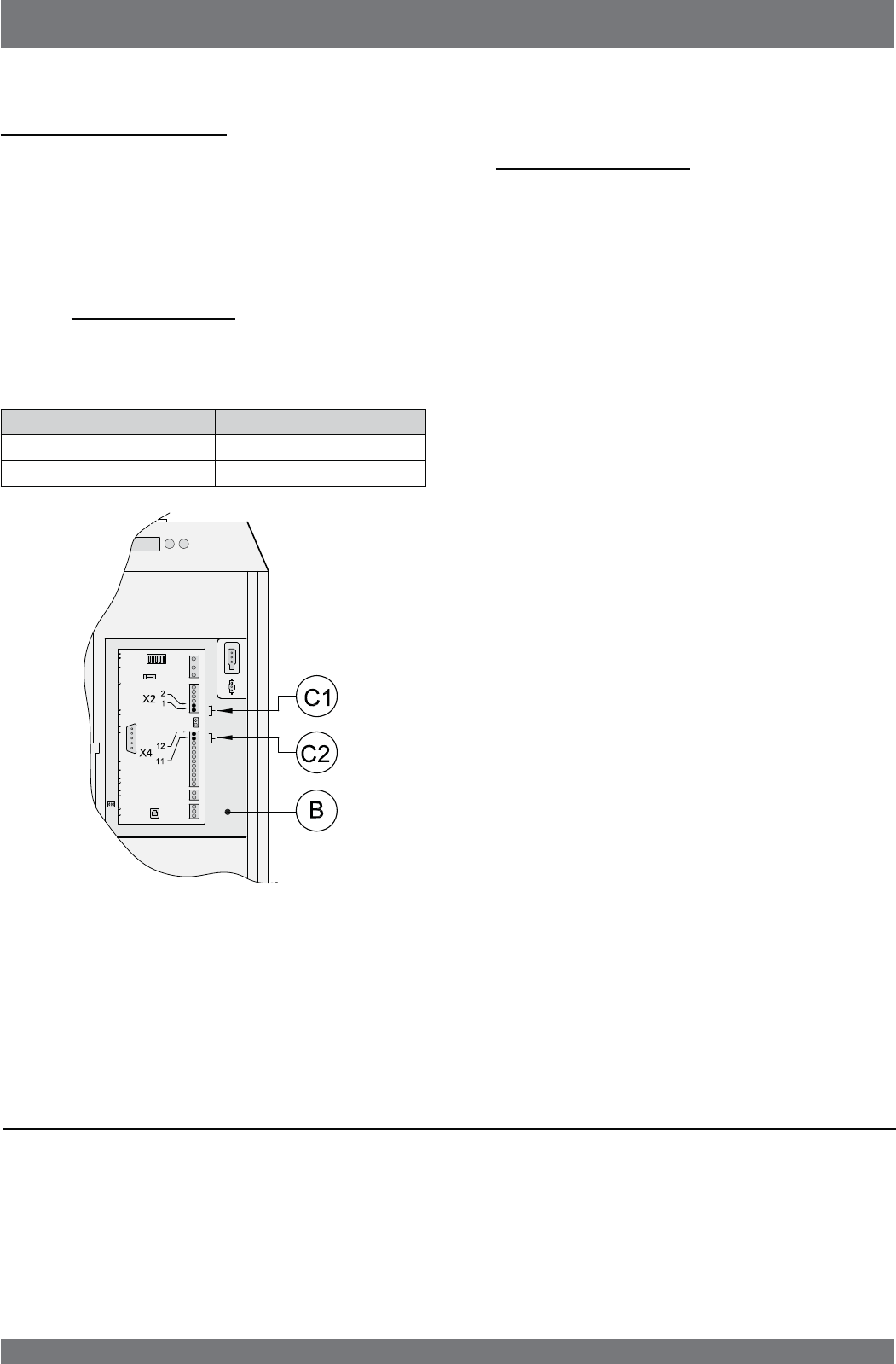 C2 = Aansluiting aan/uit ruimtethermostaat (potentiaalvrij)