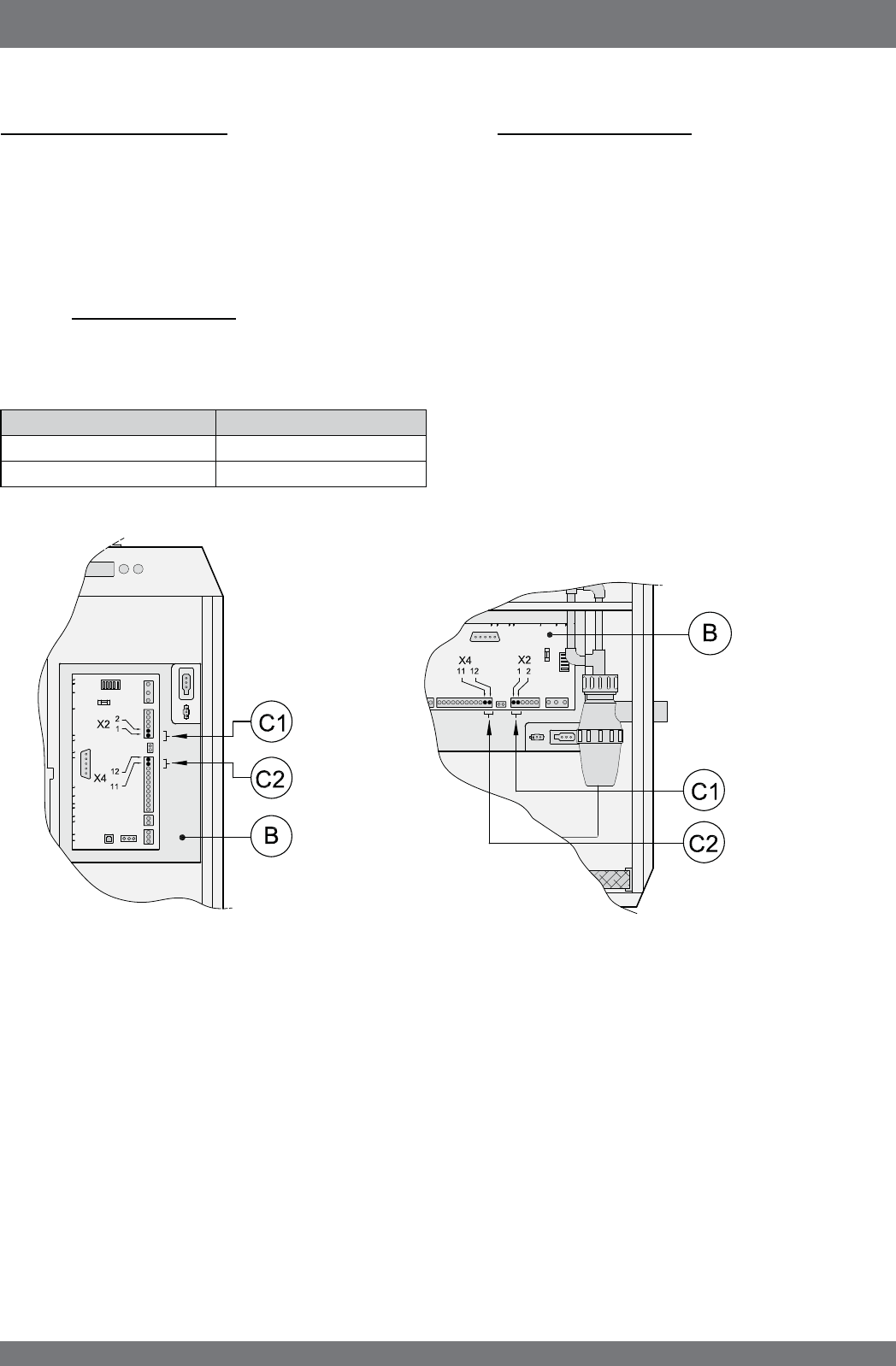 contacten X2-1 en X2-2 van de (losneembare) steker X2 (zie