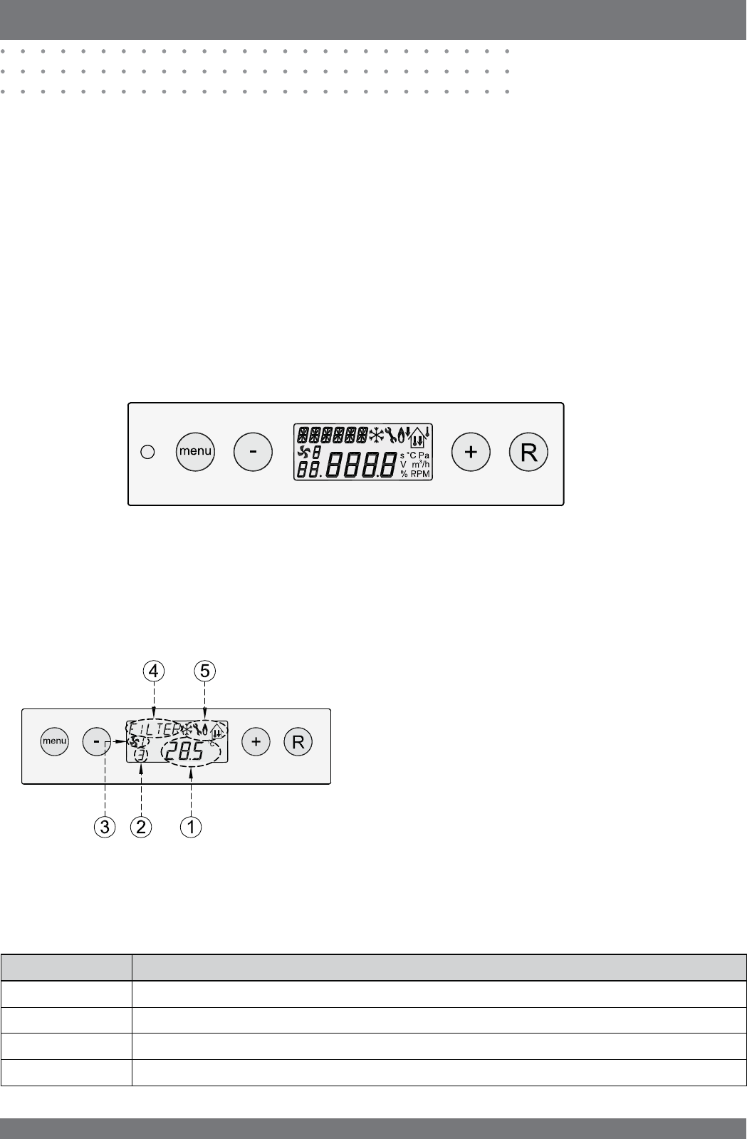 Het bedieningspaneel bevat een 4-tal toetsen en een sym-