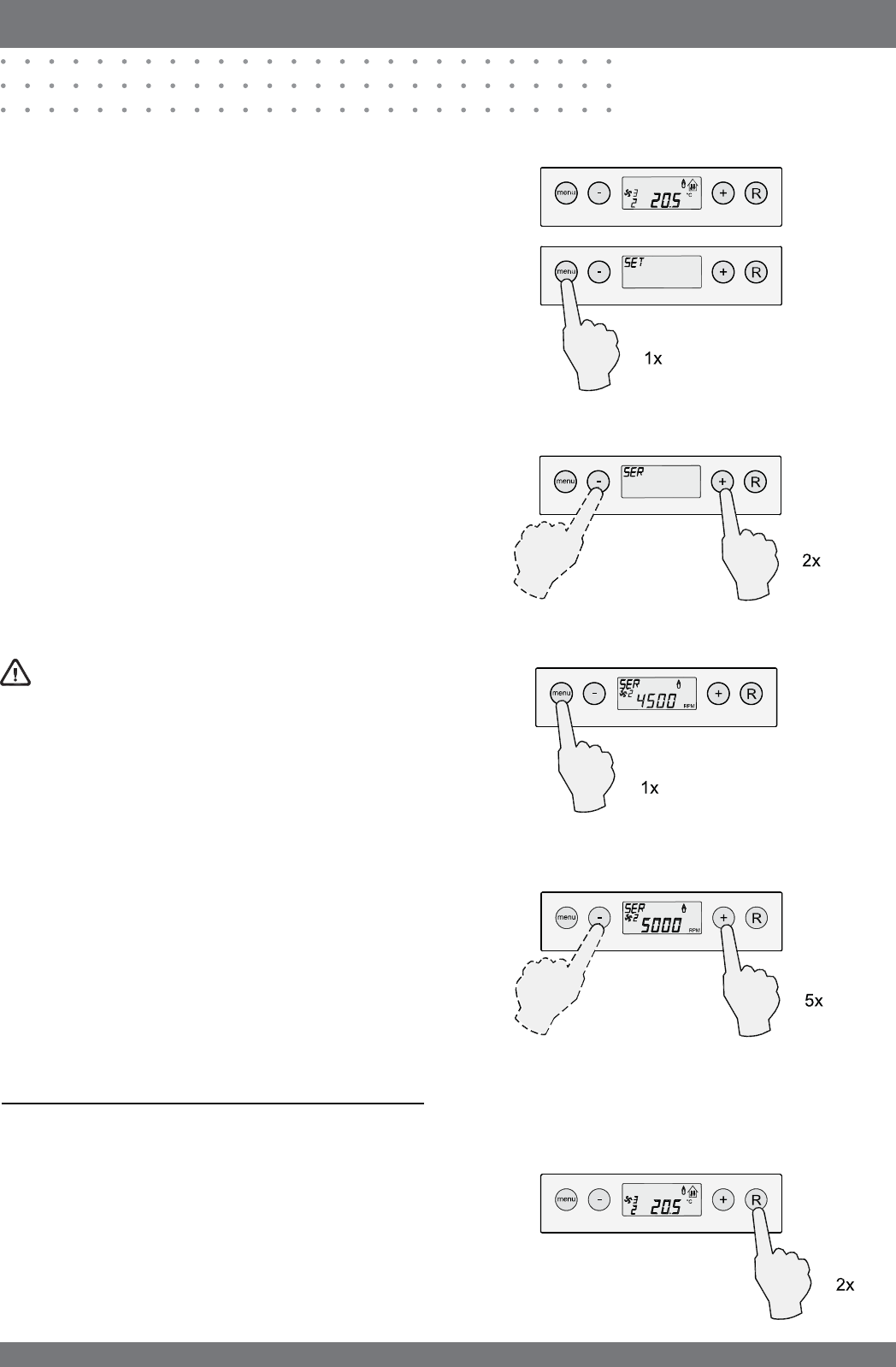‘+’ toets met stapjes van 100 RPM aan te passen.