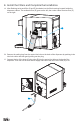4. Install the Filters and Complete the Installation A. After flushing, twist each filter (D and E) clockwise into the filter housings located inside the dispenser cabinet. The sediment filter (D) goes on the left, the carbon +ultra filtration filter (E) on the right. E D B. Remove the safety plug from the water inlet hole on the back of the dispenser by pushing in the inlet hole collar and then gently pulling out the plug. C.