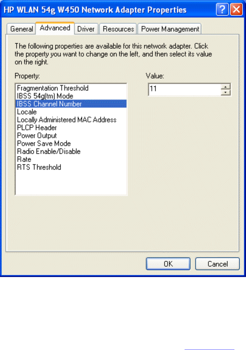 HP WLAN 54g W450 Network Adapter Properties,