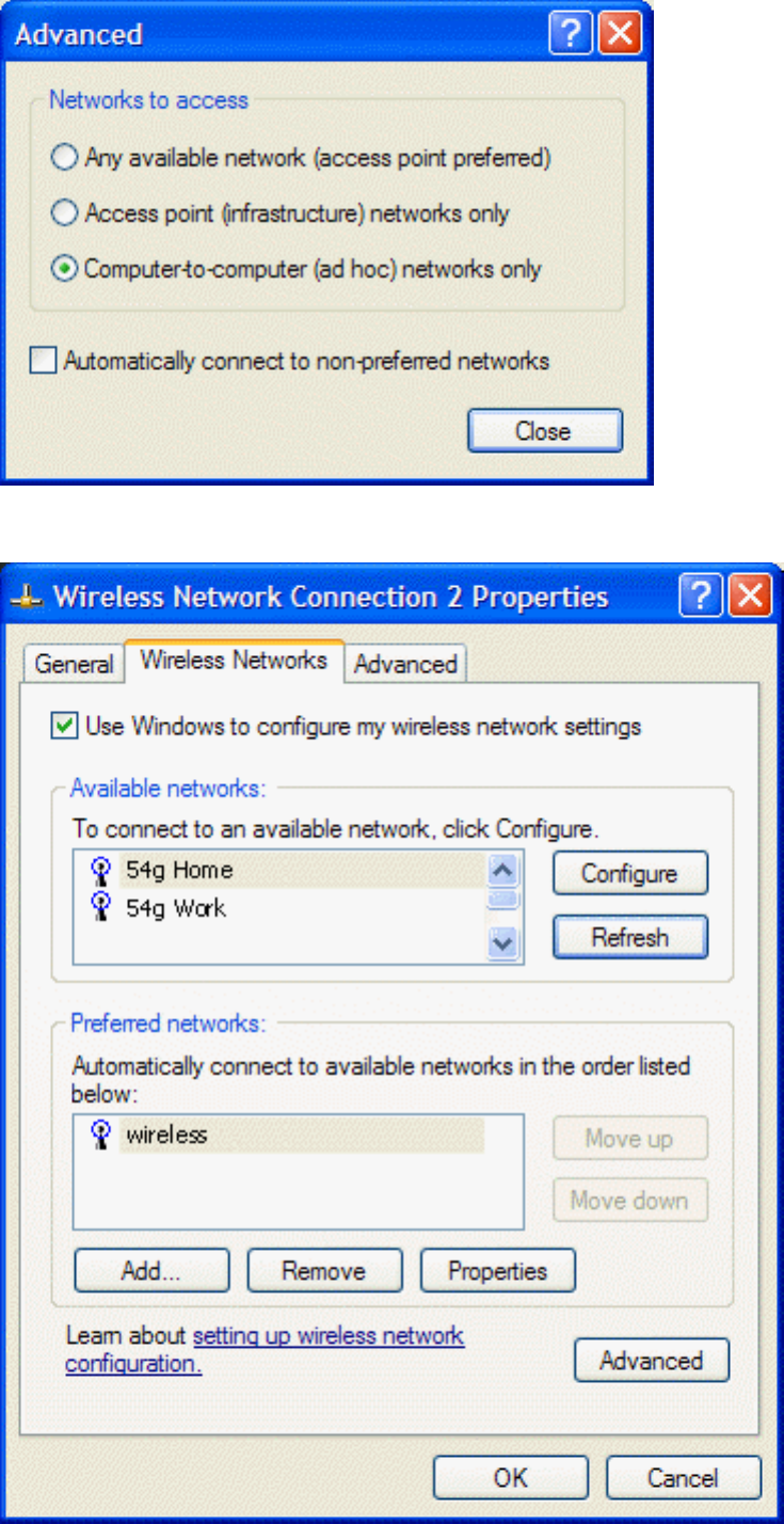 13. Select Computer-to-computer (ad hoc) networks only, and click Close.