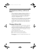 HP-323140-001.book Page 15 Tuesday, April 1, 2003 4:20 PM Power If you use the notebook occasionally during the discharge procedure and have set energy-saving timeouts, expect the following performance from your system during the discharge process: Ä ■ The monitor will not turn off automatically. ■ Hard drive speed will not decrease automatically while the notebook is idle. ■ System-initiated Standby will not occur.