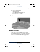 67426-xx1.book Page 3 Tuesday, August 24, 2004 4:02 PM DRAFT Revised: 8/24/04 File: Chap3.fm PN: HP-367186-001 Pointing Devices and Keyboard To change the pointing stick cap: 1. Turn off the tablet PC. 2. Gently pull off the used pointing stick cap. 3. Press a replacement cap into place. ✎ Replacement caps are not included with the tablet PC. Using the TouchPad To move the pointer, slide your finger across the TouchPad surface in the direction you want the pointer to go.