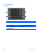 Rear components Component Description (1) Attaches an optional security cable to the computer. Security cable slot NOTE: The security cable is designed to act as a deterrent, but it may not prevent the computer from being mishandled or stolen. ENWW (2) RJ-45 (network) jack Connects a network cable. (3) External monitor port Connects an external VGA monitor or projector.