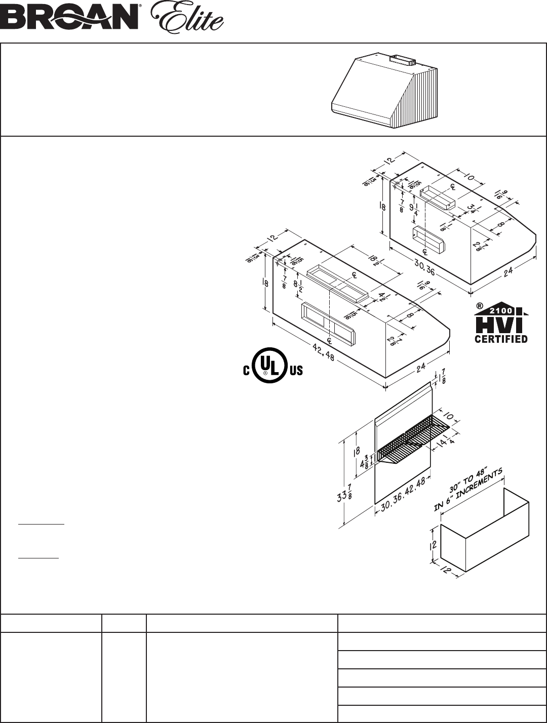 Available for hood widths up to 48”