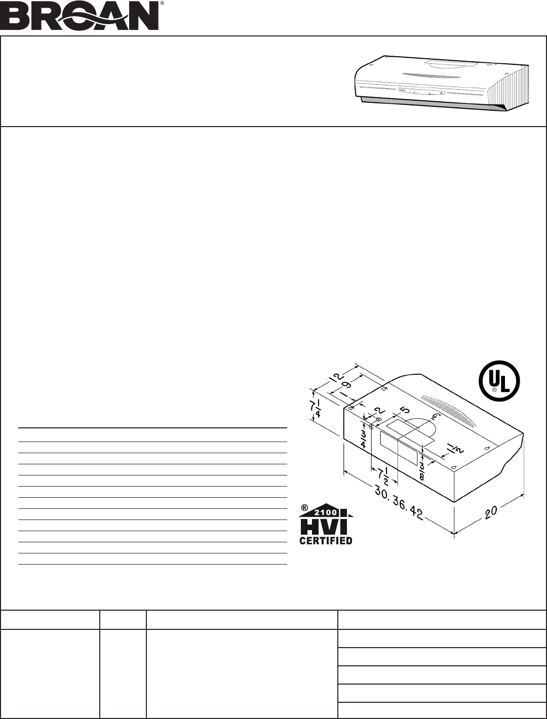 Range hood shall be Broan QS1 (QS2) (QS3) Series.