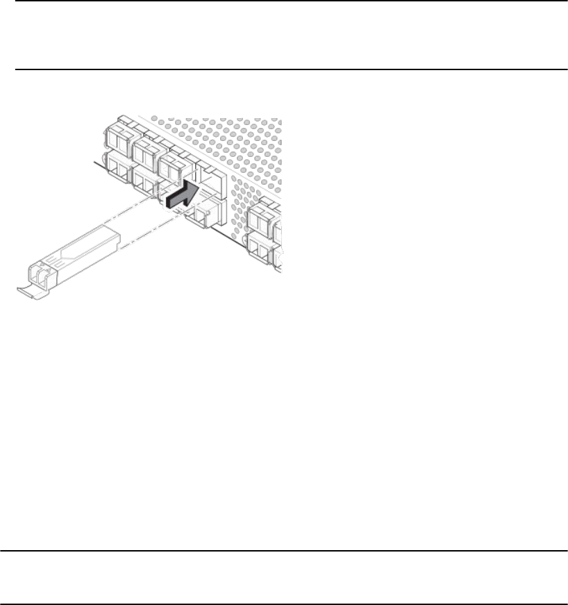 FIGURE 6 Installing an SFP in the upper row of port slot