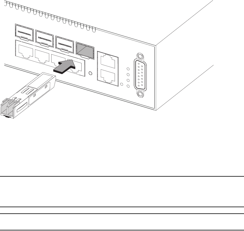 3. Slide the SFP transceiver into the slot until it clicks into place.
