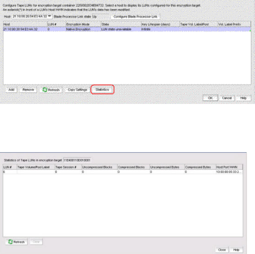 the LUN or LUNs you selected is displayed. Tape LUN statistics are cumulative.