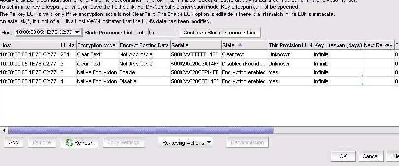 • Re-key State: The state of a manual LUN rekeying operation. Options are: