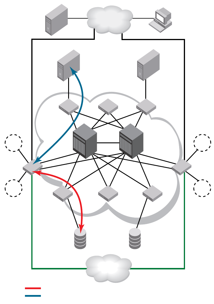 Figure 95 shows an encryption deployment in a single fabric with dual core directors and several