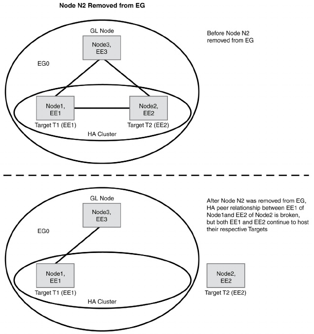 The procedure for removing a node depends on the node’s status within an encryption group. HA