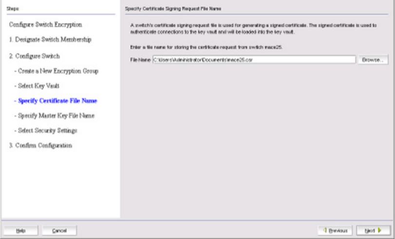 5. Enter the filename in which you want to store the certificate information, or browse to the file