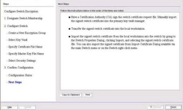 7. Back up the master key to a file. (Opaque key vaults only). Brocade Network Advisor saves the
