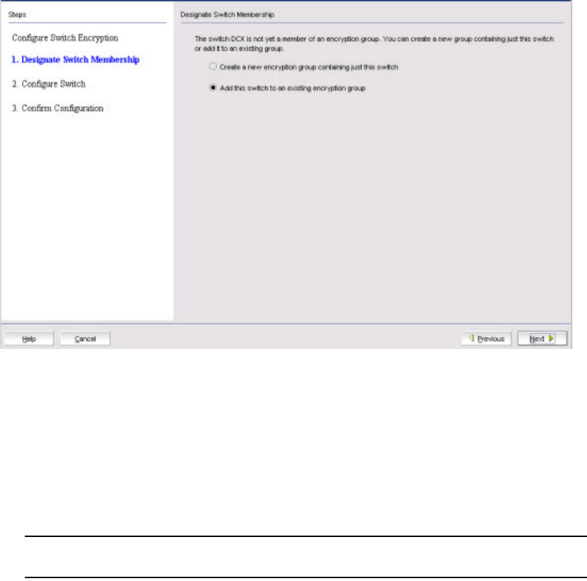 4. For this procedure, select Add this switch to an existing encryption group, then click Next.