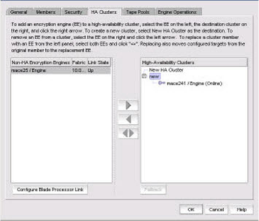 3. Click the right arrow to add the encryption engine to the selected HA cluster.