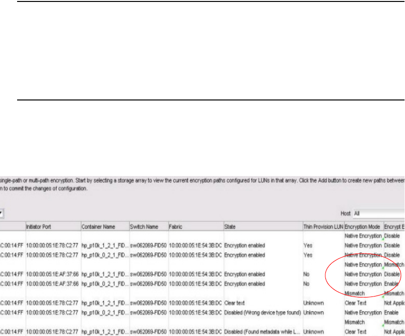 Encryption Mode for any entries showing Mismatch. To correct the mismatch, click the
