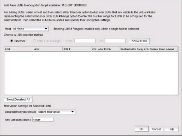 FIGURE 57 Add Encryption Target Tape LUNs dialog box