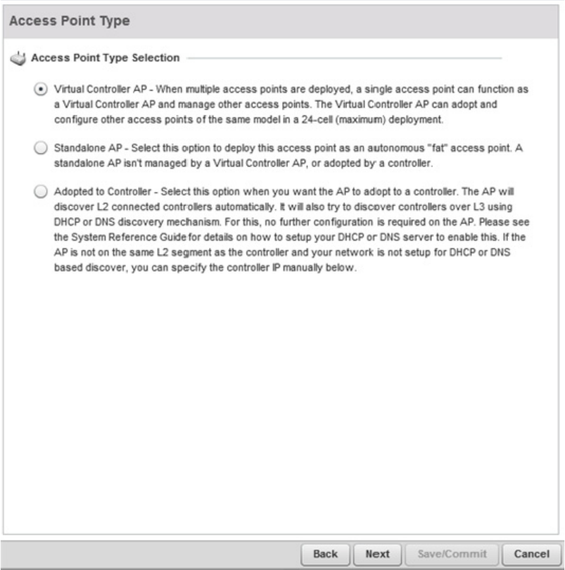 9. Select Next. The Initial AP Setup Wizard displays the Access Point Type screen