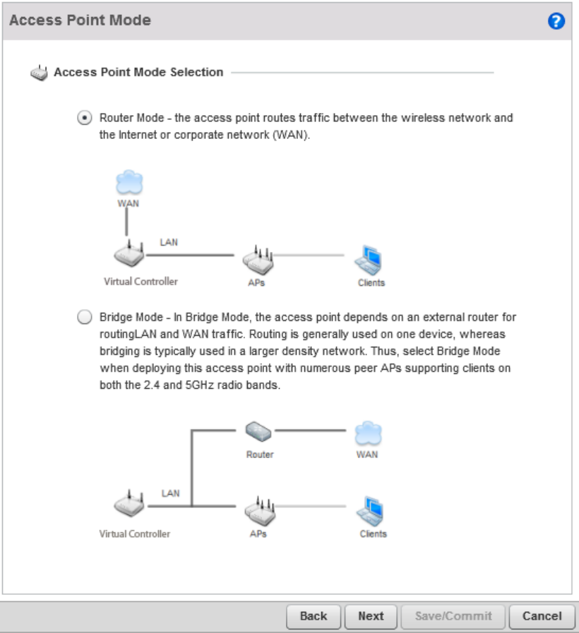 12. Select Next. The Initial AP Setup Wizard displays the Access Point Mode screen
