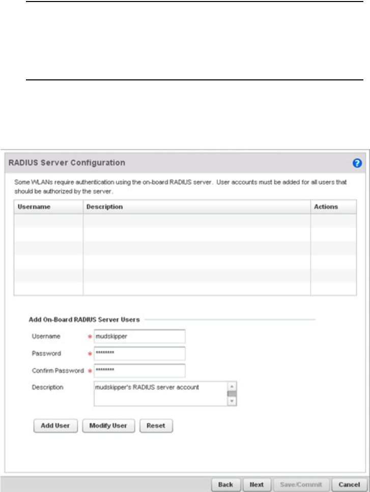 If you are using the Access Point’s onboard RADIUS server, an additional