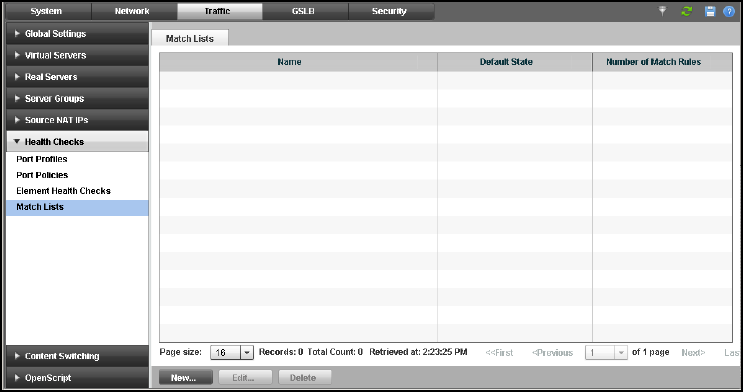 To view match list policies on the Brocade Virtual ADX, perform the following steps within the