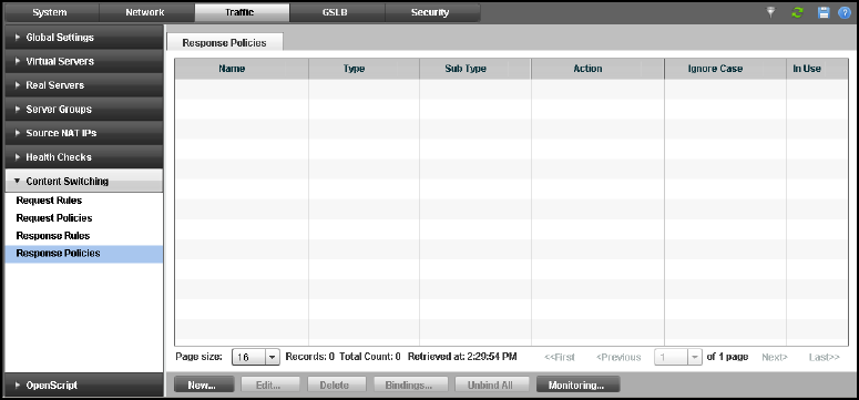 2. From the sidebar, select Content Switching, and then select Response Policies.