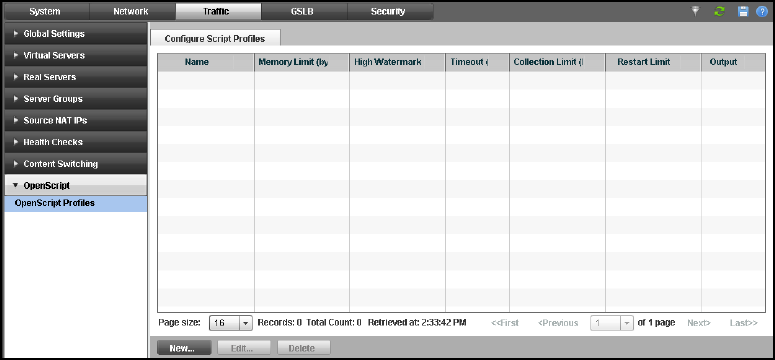 To view script profiles on the Brocade Virtual ADX, perform the following steps within the Configure