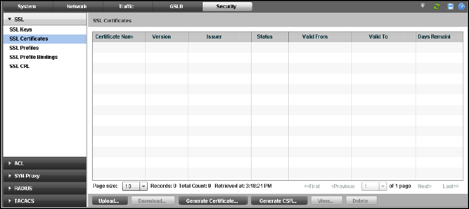 The SSL Certificates page is displayed, as shown in Figure 110.