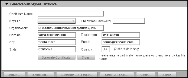 • Certificate Name: Enter the name of the file that is used to stored the self-signed