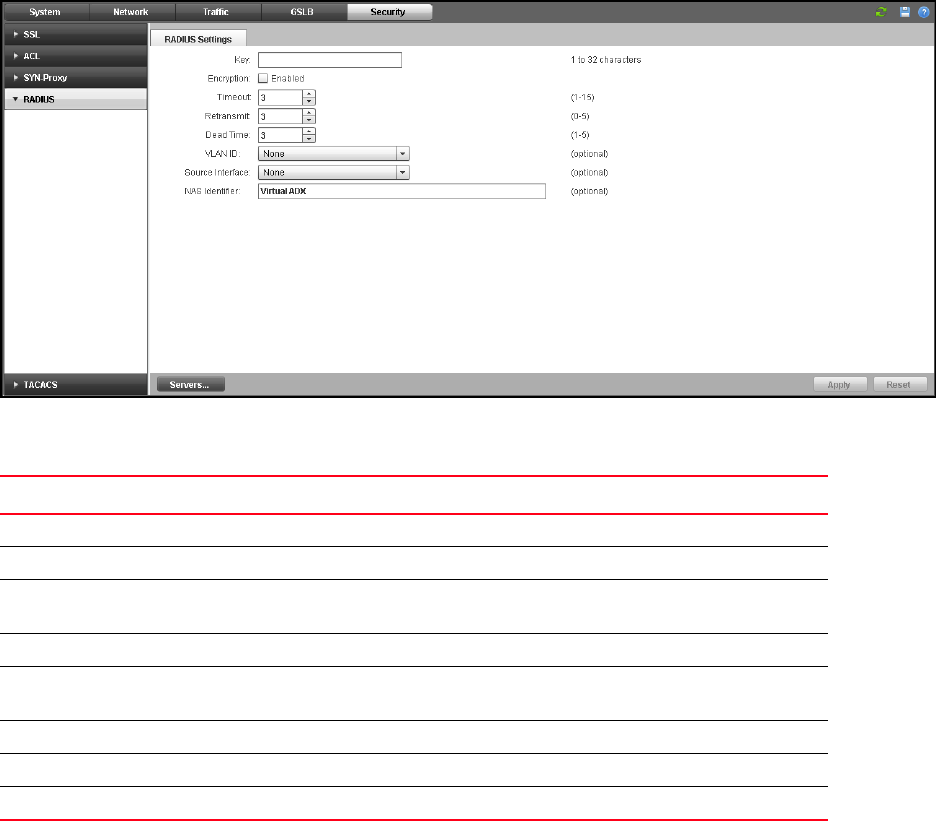 The RADIUS Settings tab lets you set the basic RADIUS settings. See Figure 129.