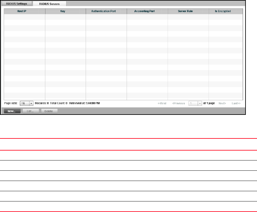 TABLE 30 RADIUS Servers tab controls