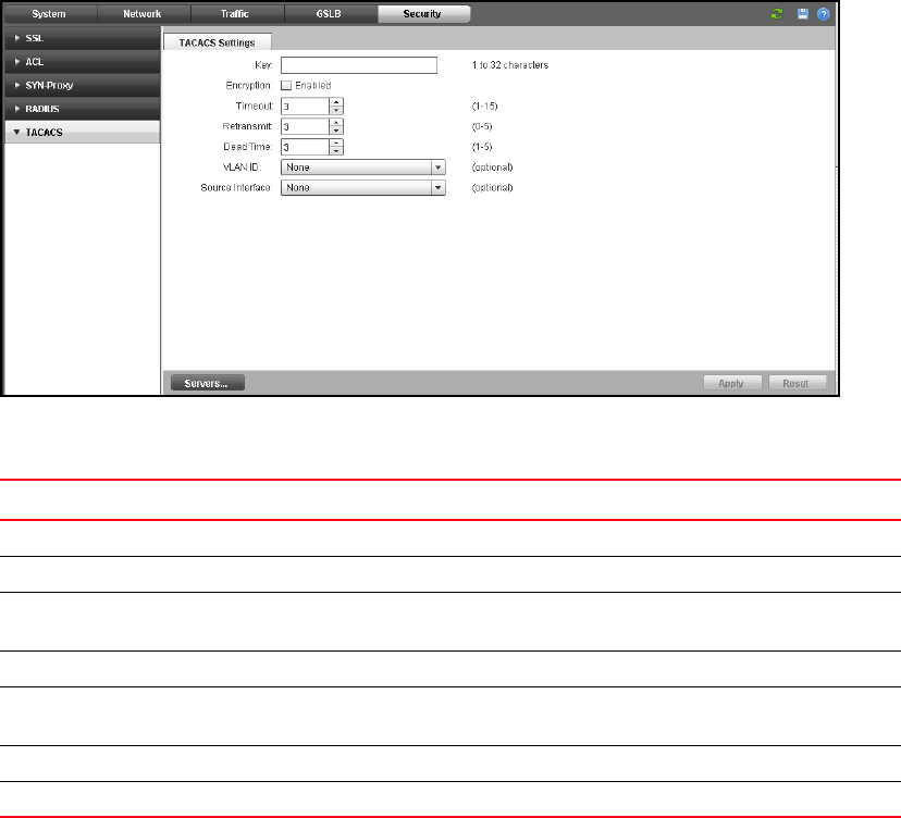 The TACACS Settings tab lets you configure the basic settings for a TACACS Server. See Figure 132.