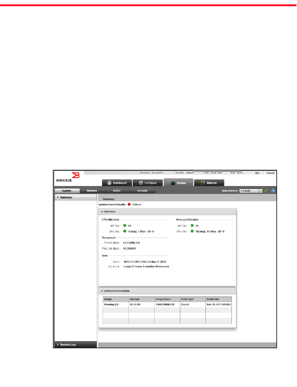 You can monitor the percentage of CPU utilization and memory currently used by the Brocade