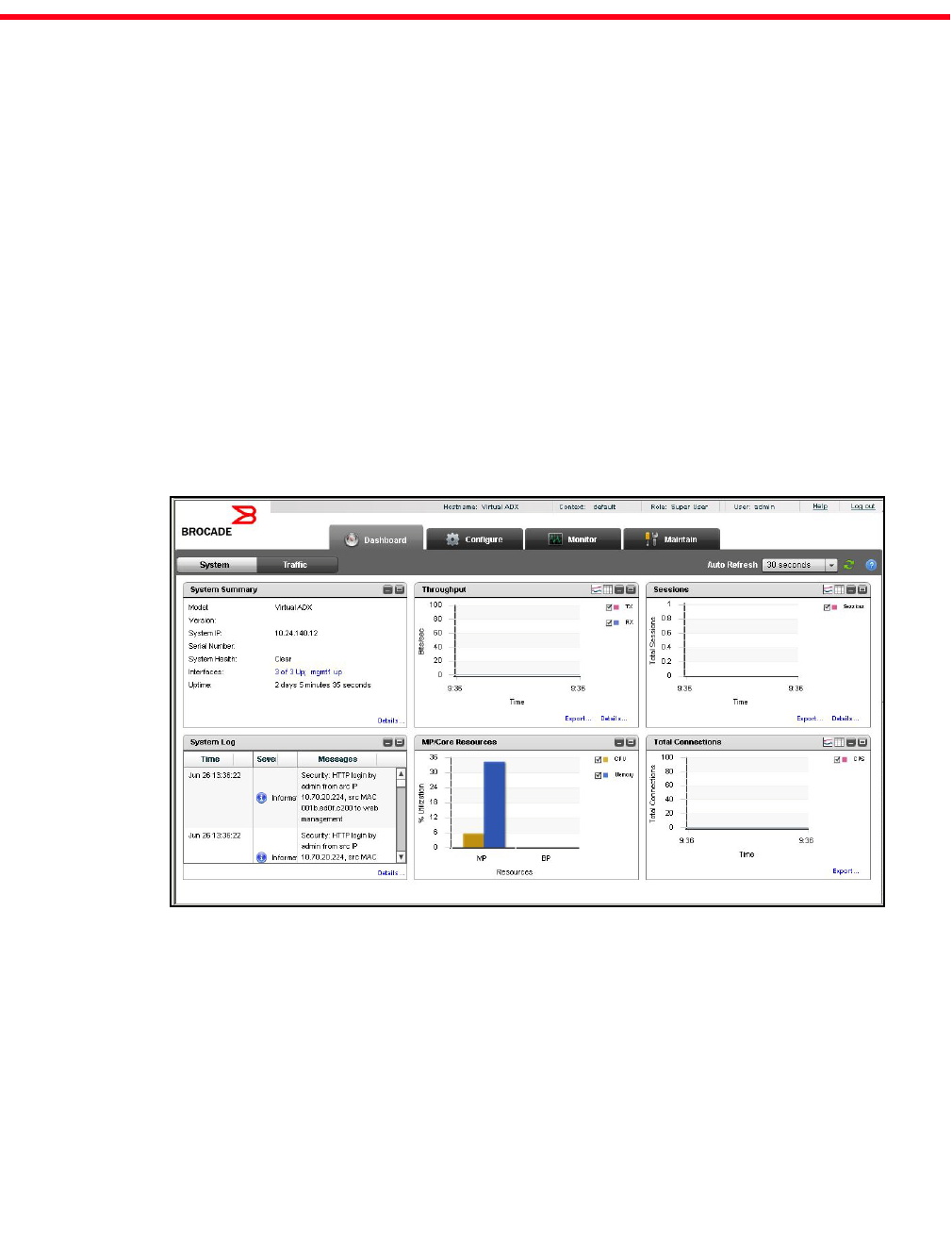 distribution. By default, the Brocade Virtual ADX web interface displays the System dashboard after
