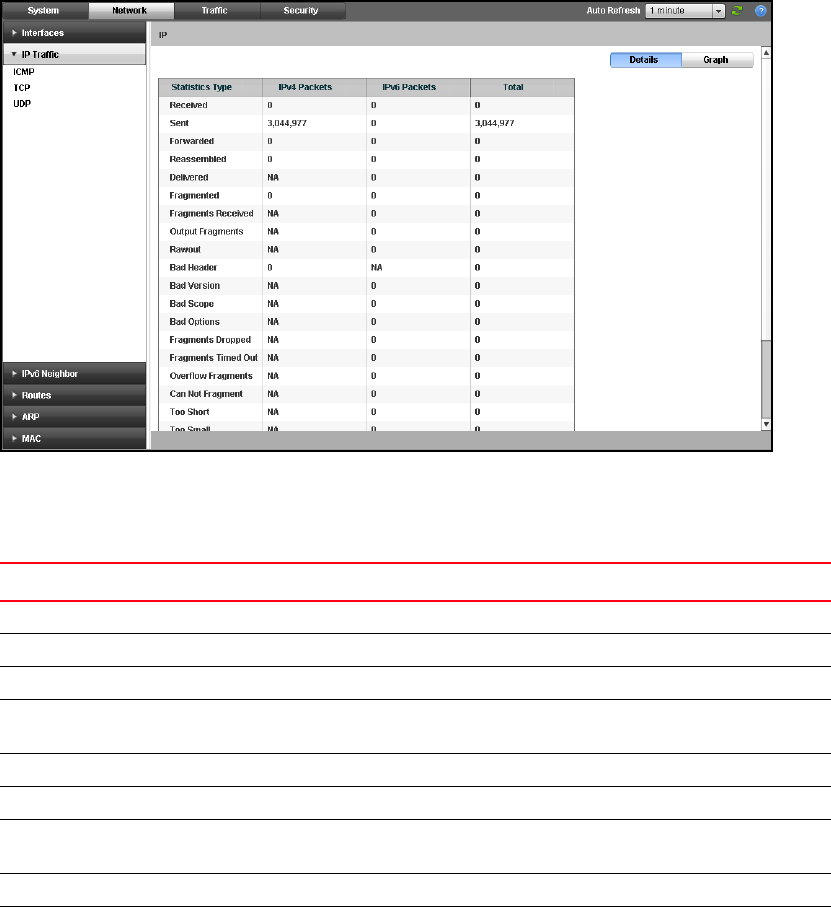 The IP page is displayed, as shown in Figure 139. To view the IP statistics in the graphical