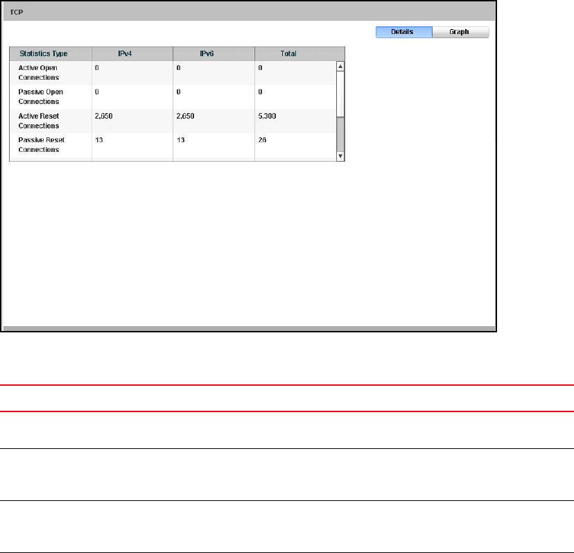 and IPv6 packets for the statistic types are displayed. To view the TCP statistics in the graphical