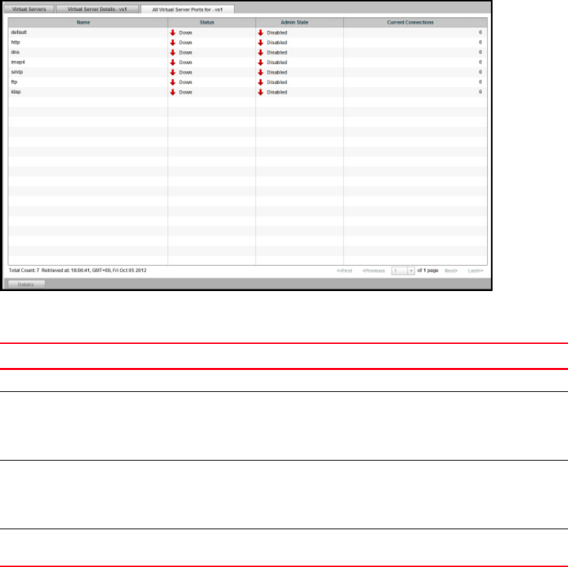 TABLE 62 Virtual Server Ports page - fields and descriptions