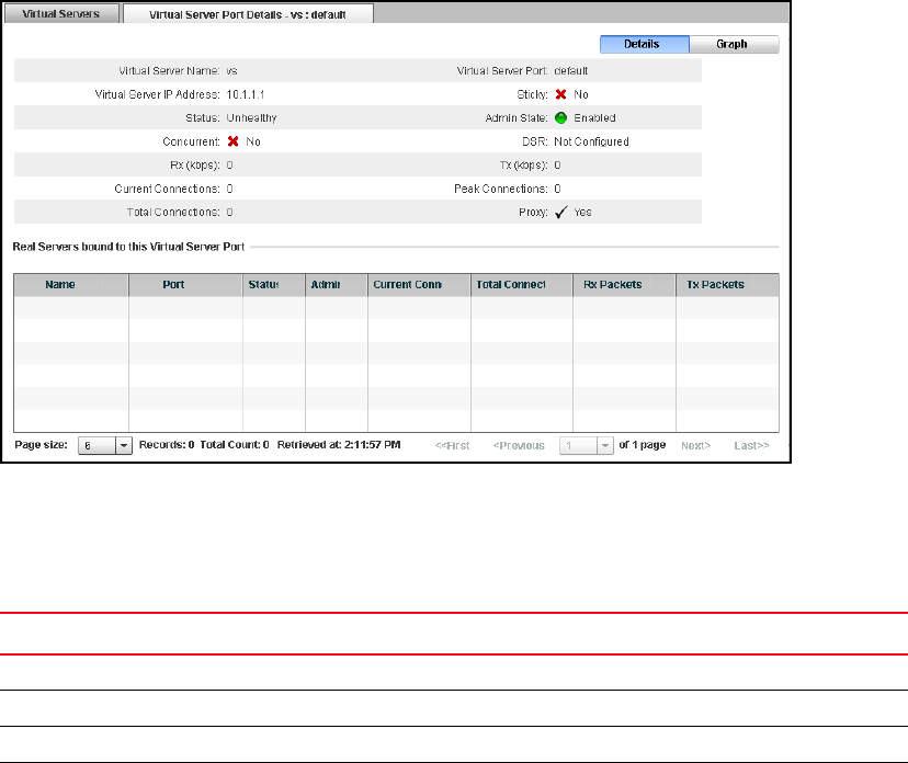 graphical format, click the Details or Graph on top right corner of the Virtual Server Port Details