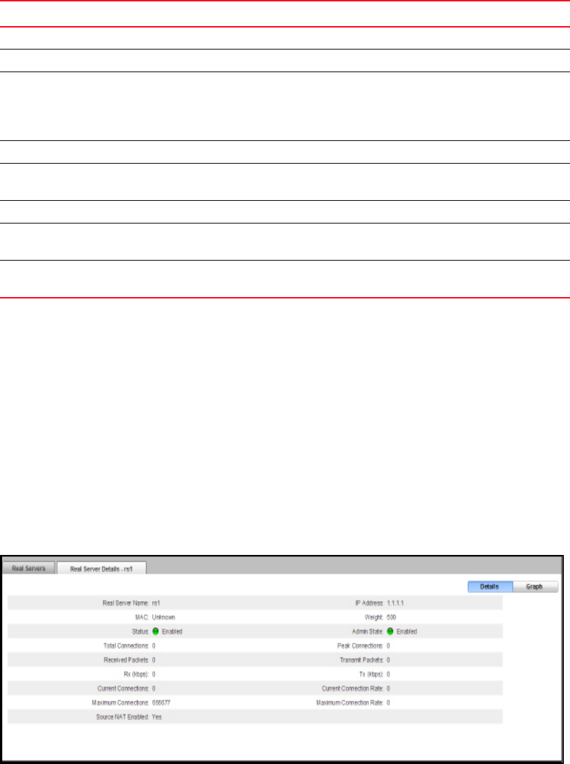 The Real Server Details page is displayed, as shown in Figure 151. To view the real server
